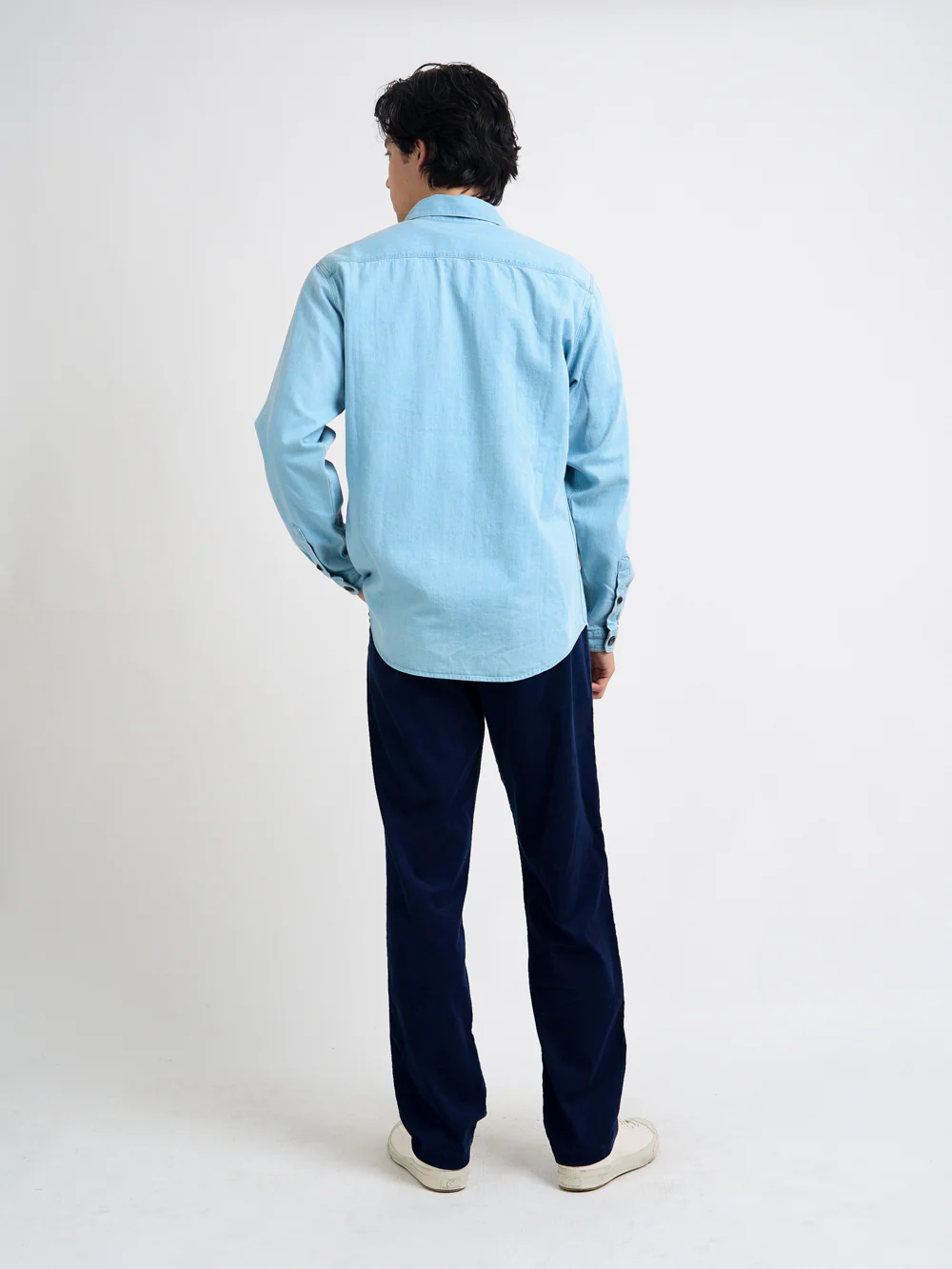 Inspired by vintage military shirt silhouettes, the Treviscoe shirt is a modern classic and a great fit for contemporary workwear wardrobes. Crafted from a blend of cotton and recycled cotton, this version has been given an indigo-dye treatment for a light denim finish.